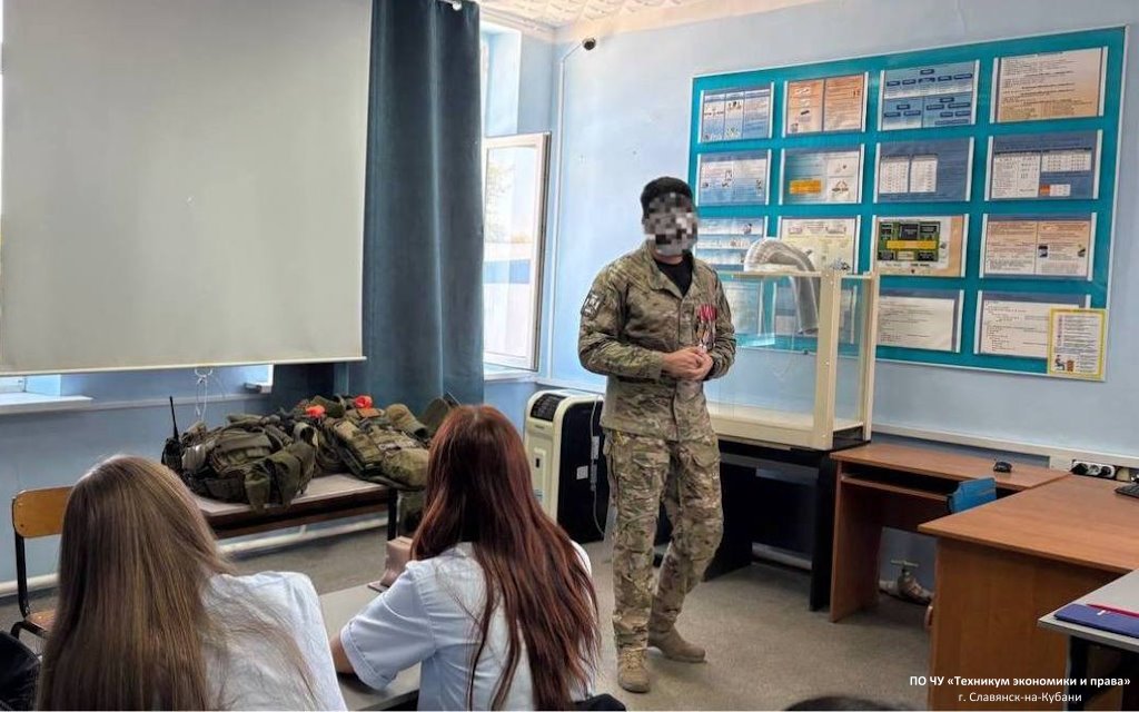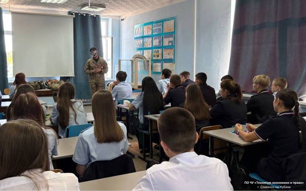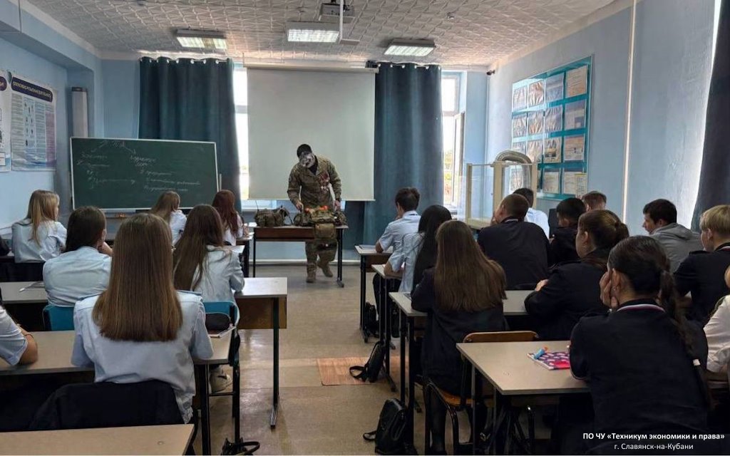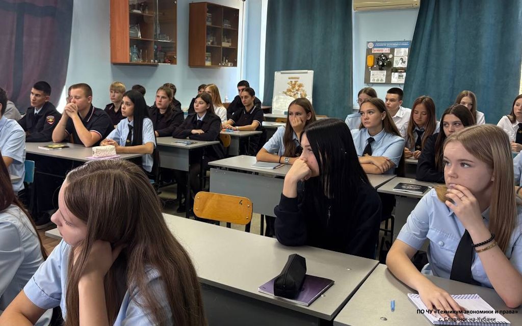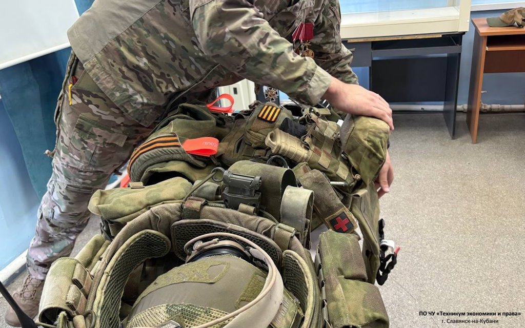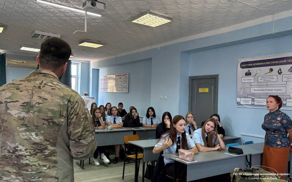 В рамках патриотического воспитания и формирования уважительного отношения к исторической памяти и современным героям в техникуме экономики и права состоялась встреча с членом Славянского местного отделения Всероссийской общественной организации ветеранов "Боевое братство" имени полковника Александра Борисовича Пантелеева, ветераном боевых действий Кириллом с позывным "КУБА".