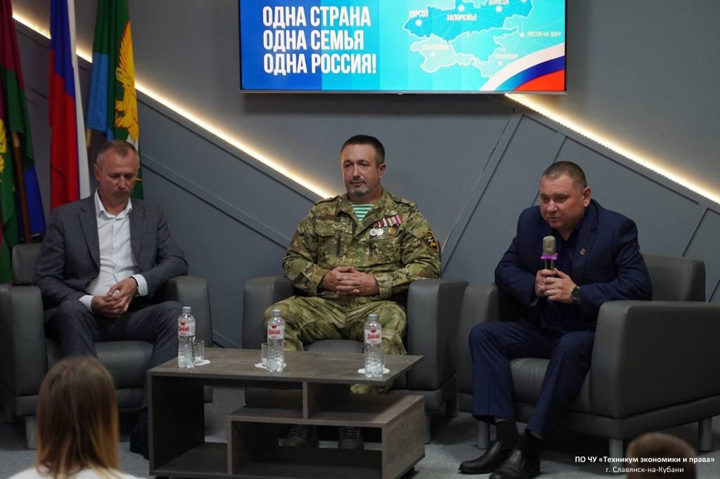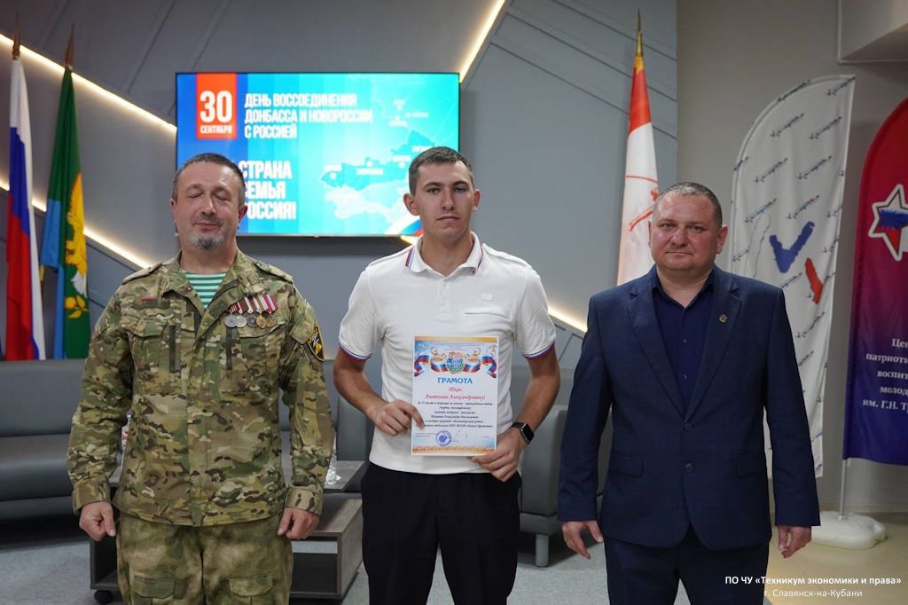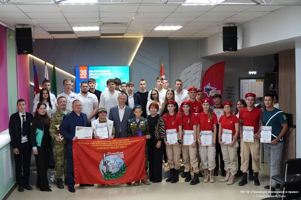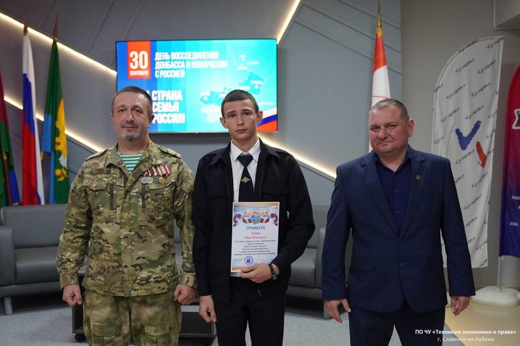 30 сентября студенты и преподаватели Техникума экономики и права приняли участие в «Открытом диалоге с Героем» ко Дню воссоединения Донецкой и Луганской народных республик, Запорожской и Херсонской областей с Российской Федерацией.