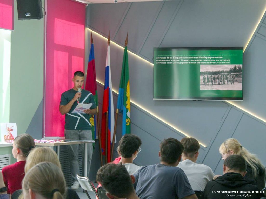 9 октября команда Техникума экономики и права приняла участие в 1 этапе интеллектуального конкурса «Поклонимся великим тем годам», посвящённого 82-ой годовщине празднования Дня разгрома советскими войсками немецко‑фашистских войск в битве за Кавказ.