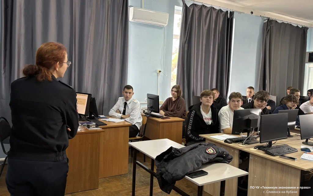 В техникуме экономики и права состоялась важная встреча студентов с инспектором ОПДН ОМВД РФ по Славянскому району Нагоевой К. А.